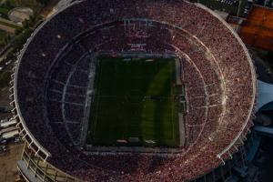 本场比赛在河床主场纪念碑球场进行,河床官方晒出了航拍角度的球场震撼视频,球迷们高歌不停。