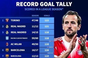 五大联赛单赛季进球榜:拜仁109球第12 都灵123球、皇马121球前二近期受到不少球迷关注,相关消息也在持续更新中,整体情况正在逐步明朗。