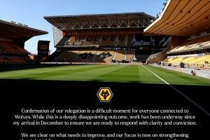 关于狼队主席公开信:确认降级是艰难时刻,我们清楚需要改进之处,当前阶段的情况已基本明朗。