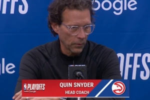 体育资讯4月21日讯 NBA季后赛东部首轮G2,老鹰107-106险胜尼克斯,大比分1-1战平。赛后老鹰主帅斯奈德接受了媒体采访,以下为采访全文。