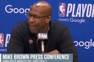 体育资讯4月21日讯 NBA季后赛G2,尼克斯主场106-107遭老鹰逆转。赛后主帅迈克·布朗接受了采访,以下为采访全文。