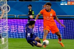 体育资讯04月21日讯 泰山vs津门虎补时阶段,杨帆亮鞋底连球带人放倒克雷桑,吃到黄牌。