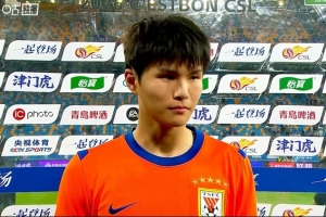 体育资讯4月21日讯 中超联赛第7轮,泰山客场2-1逆转津门虎,赛后打进制胜进球的陈泽仕接受记者采访。