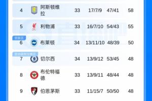 现阶段英超积分榜:切尔西5连败跌至第7,距欧冠区7分!布莱顿反超至第6的相关动态如上,后续发展值得持续关注。
