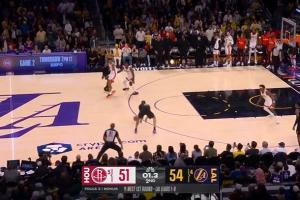 GIF-詹姆斯最后一攻被包夹 给海斯投三分了……离谱偏出