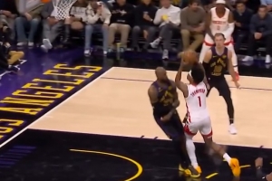 脚下动了!詹姆斯篮下站位被阿门打成2+1 湖人挑战失败