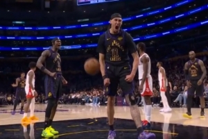 穿针引线!詹姆斯被包夹送妙传 海斯中路空切起飞打成2+1