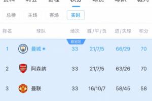 英超积分榜:曼城登顶!曼城枪手同分同净胜球,曼城进球领先3球近期受到不少球迷关注,相关消息也在持续更新中,整体情况正在逐步明朗。