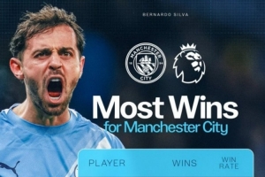 关于曼城队史英超胜场数榜:B席215场超越大卫·席尔瓦居首,当前阶段的情况已基本明朗。