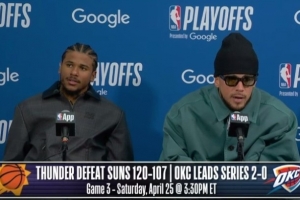 体育资讯4月23日讯 NBA季后赛,太阳107-120不敌雷霆,大比分0-2落后,赛后太阳主帅杰伦·格林和布克接受了媒体采访,以下为采访全文。
