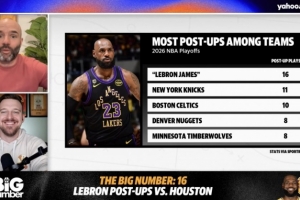 体育资讯4月23日讯 据雅虎体育统计,湖人球星在对阵火箭的系列赛前两场执行背身单打的次数,已经超过了截止目前季后赛其他所有球队的背身单打次数。