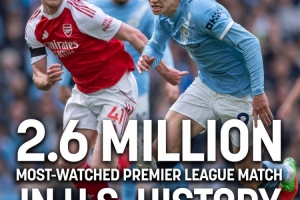 数据显示,这场比赛一共吸引了260万观众收看,成为美国历史上收视人数最多的英超比赛。