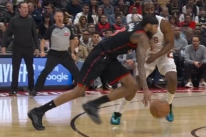 GIF-英格拉姆突破扫到哈登面部,裁判没有吹罚