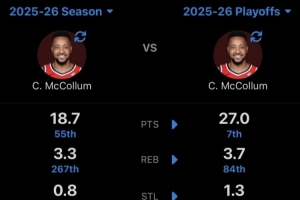 现阶段杀戮模式!麦科勒姆本赛季季后赛各项数据 都高于常规赛时期的相关动态如上,后续发展值得持续关注。