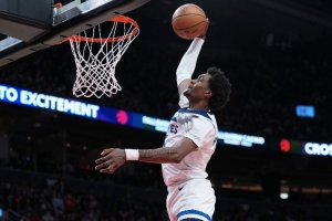 谈及麦克丹尼尔斯的表现,芬奇表示:“表现堪称惊艳。他第一节的进攻活力极其亮眼,今晚在防守端,同样打出了顶级水准。”