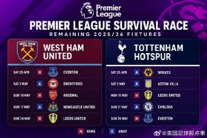 保级大战!👀 最后五轮西汉姆联3主2客,热刺2主3客