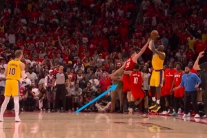 GIF-小贾巴里最后“帮”詹姆斯做了一个移动掩护 挡住了申京的封盖