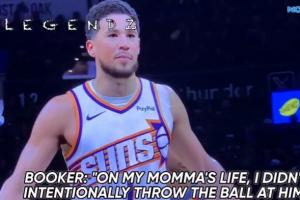 美媒发现,布克在当场比赛被吹技犯后,对裁判无奈地解释:“我用我妈妈的生命发誓,我没有故意朝他扔球,我压根就不知道他在哪里。”