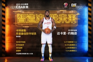 恭喜浙江稠州篮球俱乐部达卡里·约翰逊当选2025-2026赛季CBA联赛第四期卡特彼勒月度最佳防守球员(第33-42 轮)!