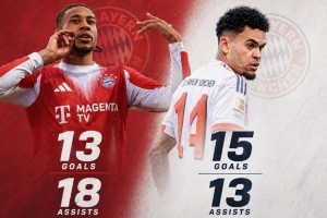 截至目前,本赛季奥利塞、迪亚斯德甲进球、助攻均13+,为拜仁球员首次做到的相关情况大致如此,后续仍需关注进一步消息。