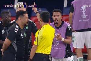 面对吉达国民教练组的质疑,马宁伸出一指示意他们不要再纠缠,染红的球员迅速离场!