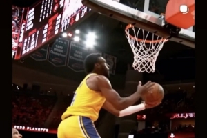 父子连线!詹姆斯转发昨日G3助攻布朗尼空接上篮慢放画面