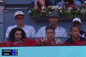 巧了不是?恩佐3人观战马德里大师赛,正好坐在贝林一家前排