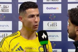 体育资讯04月30日讯 沙特联第30轮,利雅得胜利主场2-0击败刚刚夺得亚冠精英联赛冠军的吉达国民。C罗此役打进生涯第970球,赛后他接受官方转播商thmanyah sports采访,谈及沙特联球员们过度抱怨。