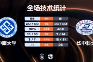 比赛上来,华中科大就迅速进入状态打出8-0的完美开局取得领先,首节打了三分钟之后中南大学才由陈茂姿罚球打破僵局,分差在本节后半段逐渐达到两位数,整个第一节中南大学只拿到10分,首节结束,华中科大23-10领先中南大学。