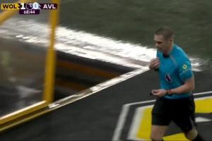 比赛第70分钟,此时狼队1-0领先。而主裁判鲍森突然中断了比赛并离场,两分钟后,他一边整理着服装和设备一边回到场内。