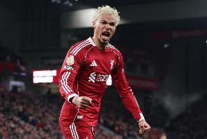体育资讯2月28日讯 英超第28轮,利物浦主场迎战西汉姆联,比赛上半场埃基蒂克破门。