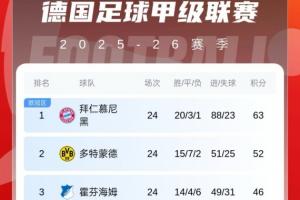 夺冠更稳了!德甲积分榜:拜仁扩大优势11分领跑,多特2轮不胜第2近期受到不少球迷关注,相关消息也在持续更新中,整体情况正在逐步明朗。