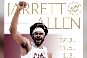 体育资讯3月1日讯 今天,骑士官方晒出了贾勒特·阿伦二月份的数据,场均能得到22.3分11.5篮板1.3盖帽,投篮命中率74%,得到10次两双。