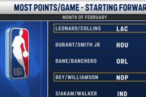 随着相关信息不断披露,2月首发锋线组场均得分榜:小卡+科林斯第1 杜兰特+小贾巴里第2的情况逐渐清晰。