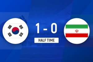 伤停补时2分钟。上半场比赛结束,韩国女足1-0伊朗女足。