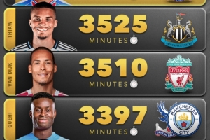 关于本赛季五大联赛非门将球员出场时间榜:范戴克3510分钟第三,当前阶段的情况已基本明朗。