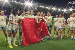 比赛结束后,中国女足球员们场边谢场,举国旗合影,并感谢球迷支持。