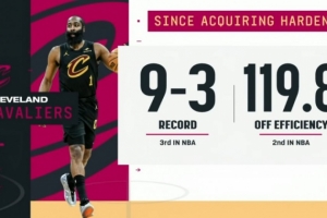 哈登加盟以来骑士战绩9-3期间联盟第三 进攻效率119.8联盟第二!的整体进展暂时整理到这里,后续仍有变化空间。