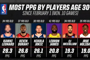 截至目前,2026年30+球员场均得分榜:小卡28.3分断层领跑 KD第2老詹第4的相关情况大致如此,后续仍需关注进一步消息。