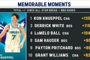 随着相关信息不断披露,全明星后至今总正负值:克尼佩尔+135领跑 怀特&三球分列第3&第4的情况逐渐清晰。
