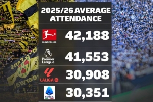 截至目前,欧洲联赛场均上座人数榜:德甲居首,英超、西甲、意甲、德乙前五的相关情况大致如此,后续仍需关注进一步消息。