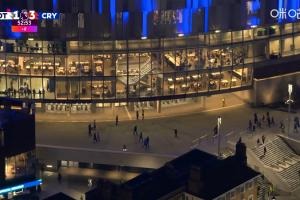 下半场开始前,转播镜头拍到热刺球场内很多座位已经空出↓